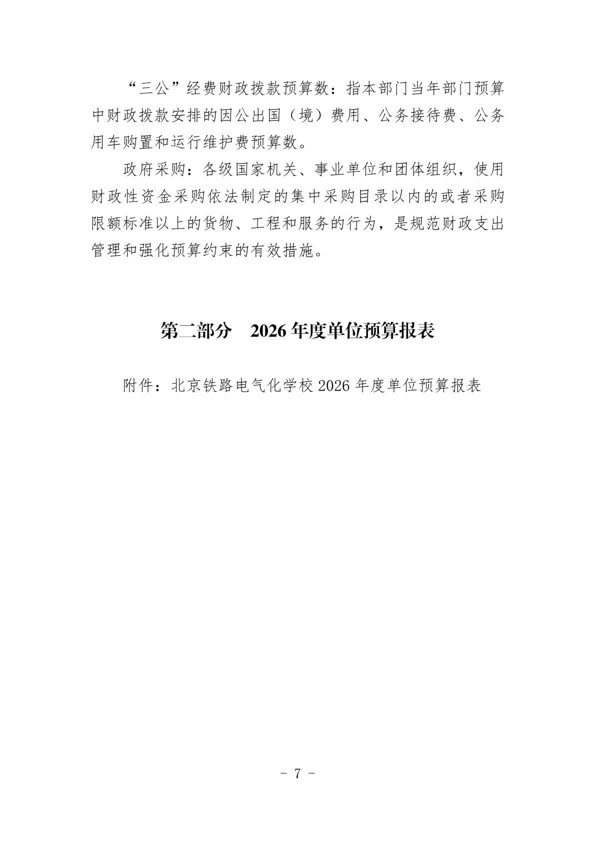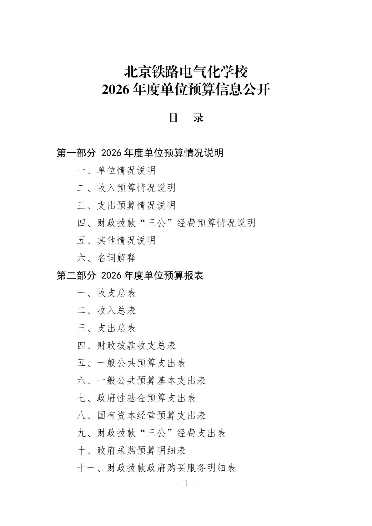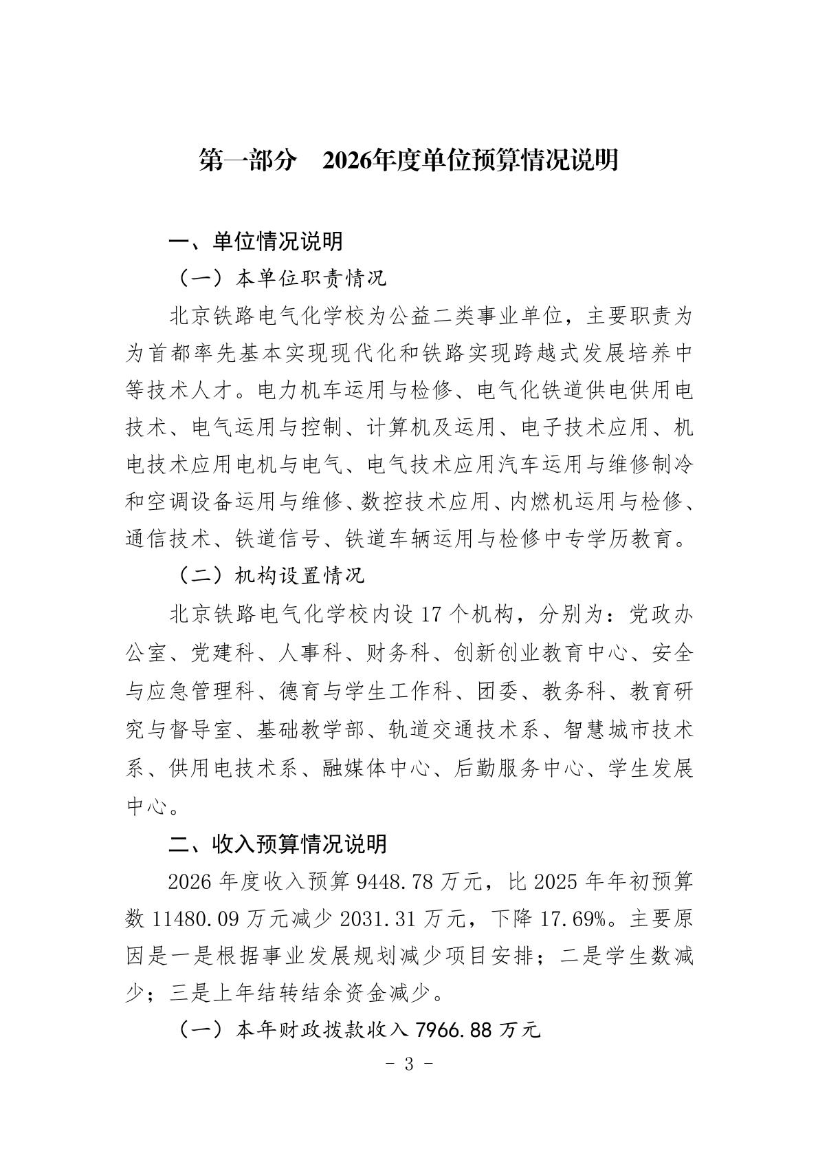 北京铁路电气化学校2026年度单位预算信息公开